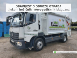 Poštovani korisnici, obavještavamo vas da će odvoz otpada koji je prema rasporedu predviđen za 25.12.2024.. (𝗕𝗼𝘇̌𝗶𝗰́) biti obavljen u subotu, 28.12.2024., dok će se odvoz predviđen za 1.1.2025.. (𝗡𝗼𝘃𝗮 𝗴𝗼𝗱𝗶𝗻𝗮) obaviti u subotu, 4.1.2025..